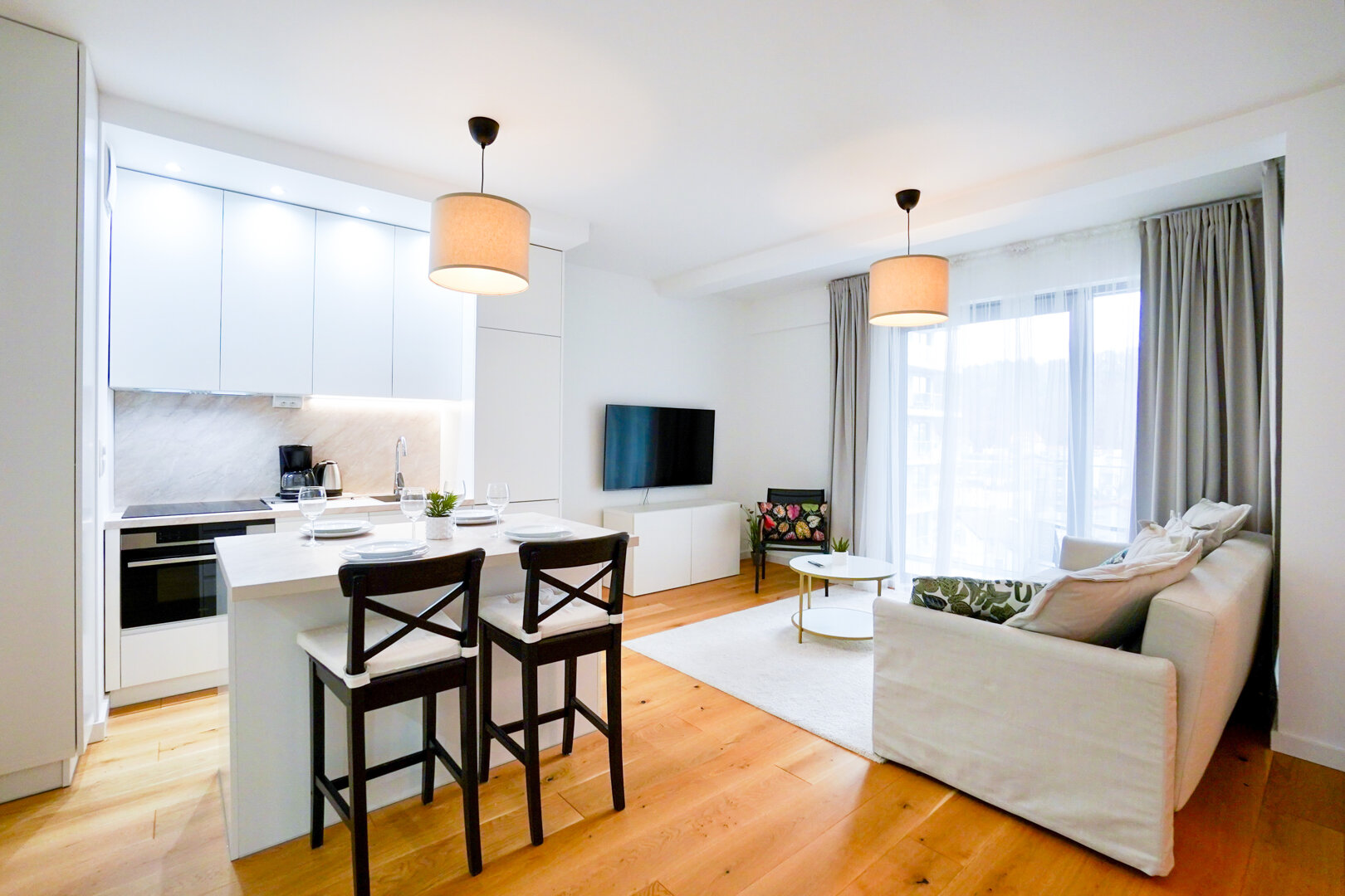 Do pobytu w naszych apartamentach można dokupić tylko i wyłącznie śniadania. Doskonała lokalizacja naszych apartamentów zapewnia bliskość wielu restauracji oferujących specjały zarówno lokalnej, jak i światowej kuchni. W pełni wyposażone aneksy kuchenne pozwalają przygotowywać posiłki bezpośrednio w wynajętym apartamencie. Szczegółowe wyposażenie i opis każdego z naszych apartamentów znajdziecie w wyszukiwarce na naszej stronie internetowej.