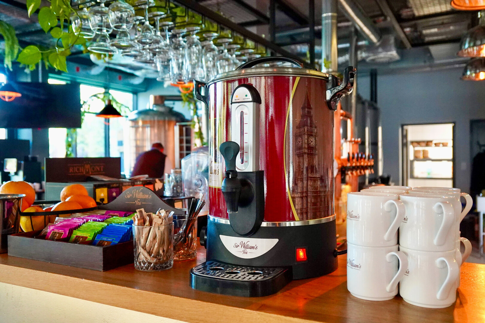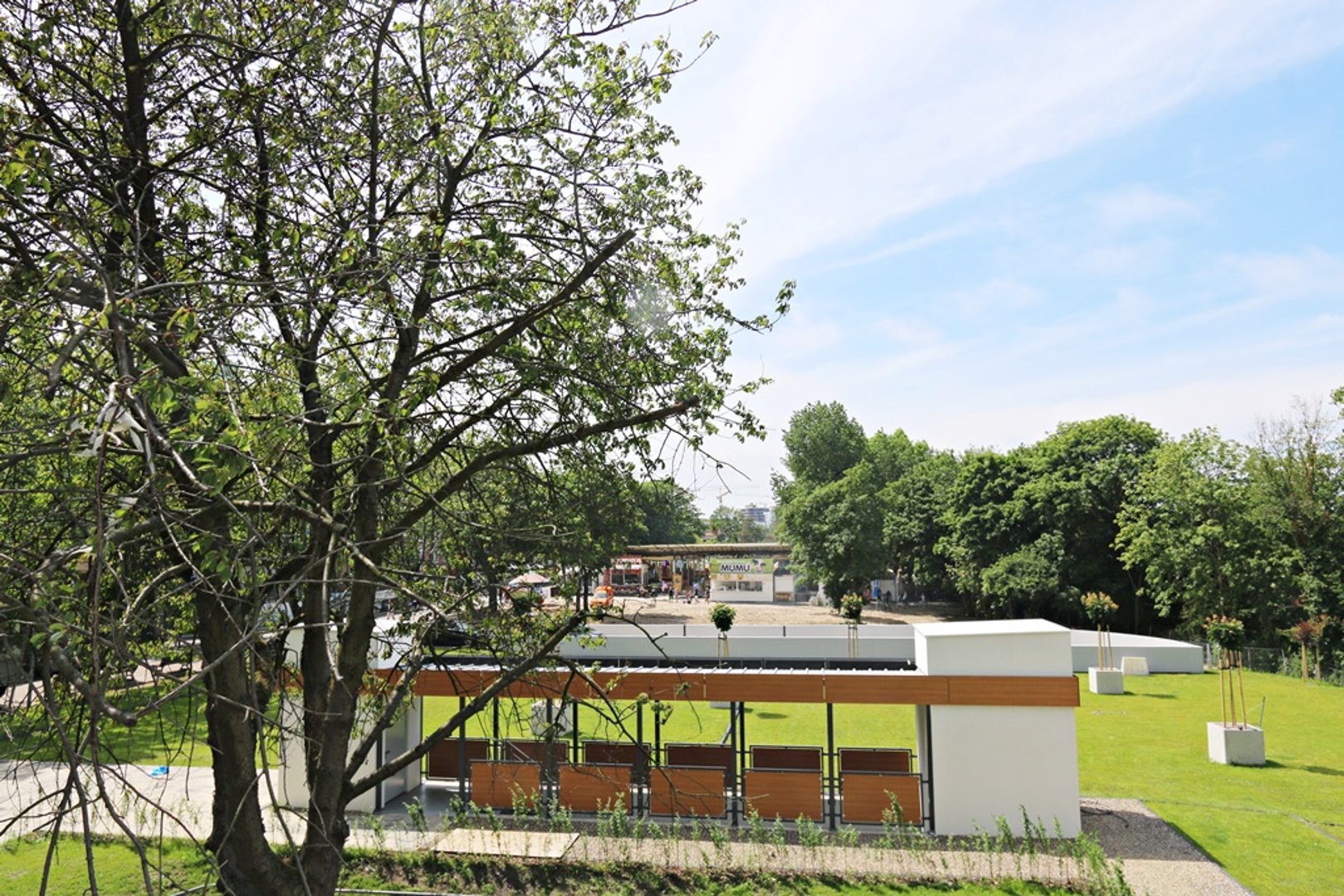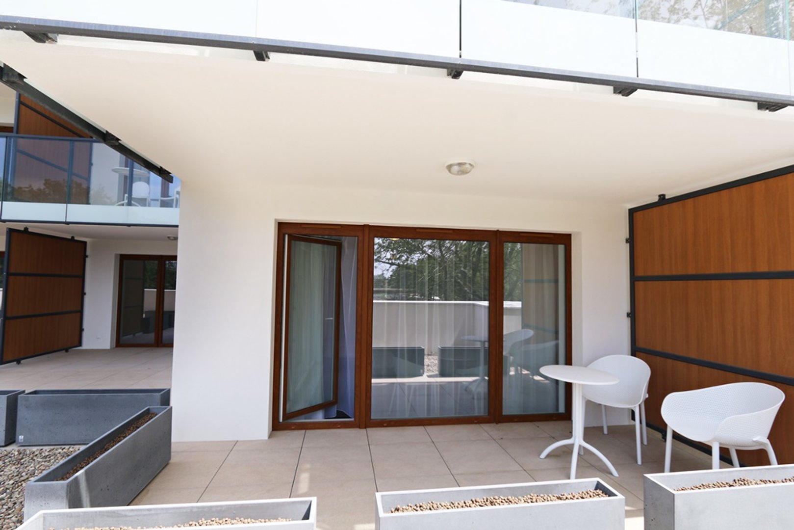 Z tarasu goście mogą podziwiać widok na promenadę oraz pobliski park
