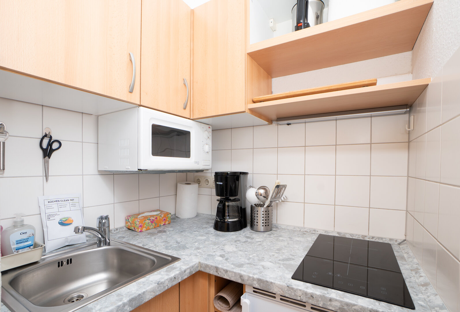Aneks kuchenny do samodzielnego gotowania (płyta grzewcza, mikrofalówka, ekspres do kawy).