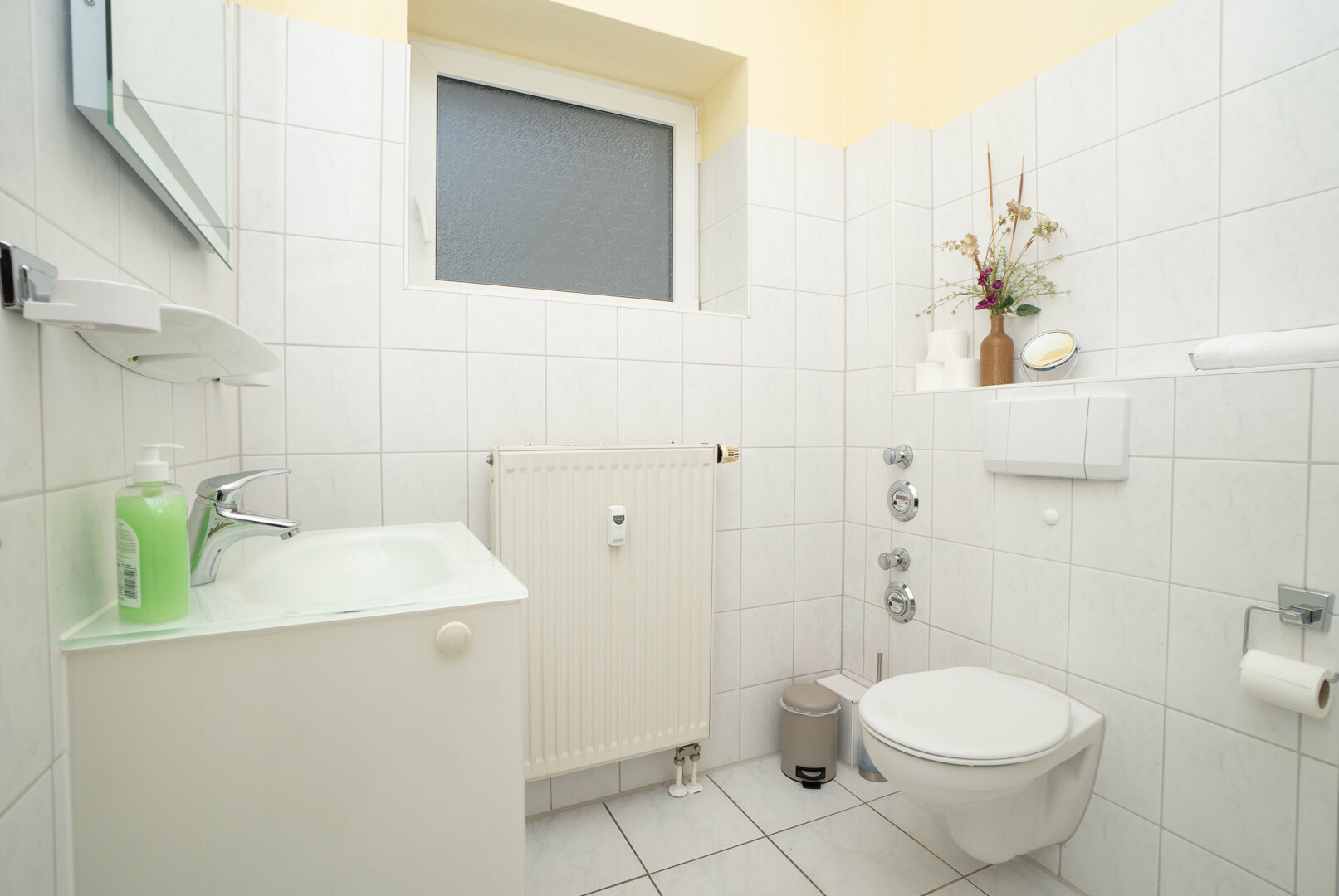 Łazienka z umywalką i WC.