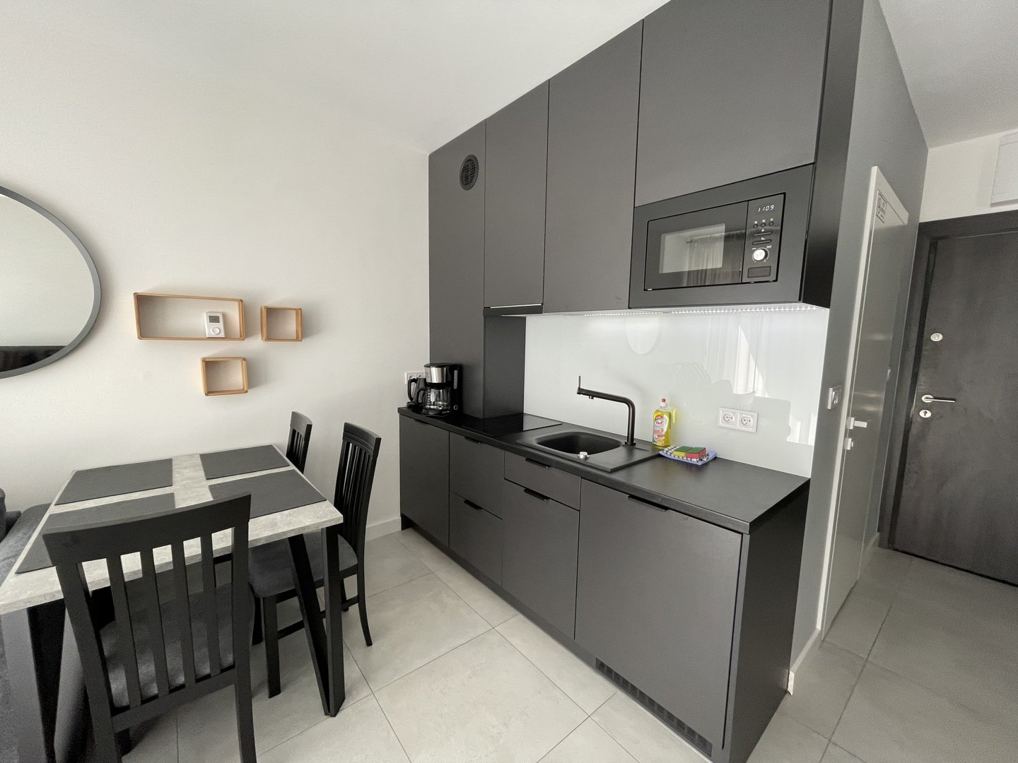 Apartament o powierzchni 28 m², idealny dla 3 osób. Oferuje rozkładaną sofę, aneks kuchenny, telewizor i łazienkę z prysznicem. Do dyspozycji gości także mikrofalówka, zmywarka, ekspres do kawy oraz balkon. Ciche otoczenie zapewnia komfortowy wypoczynek.