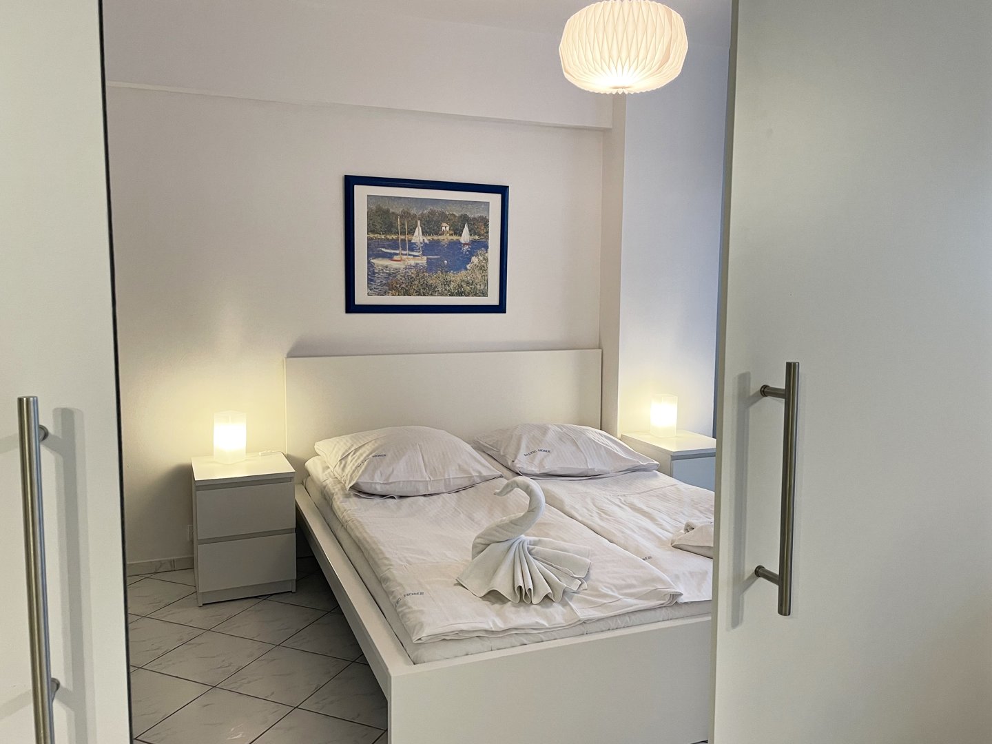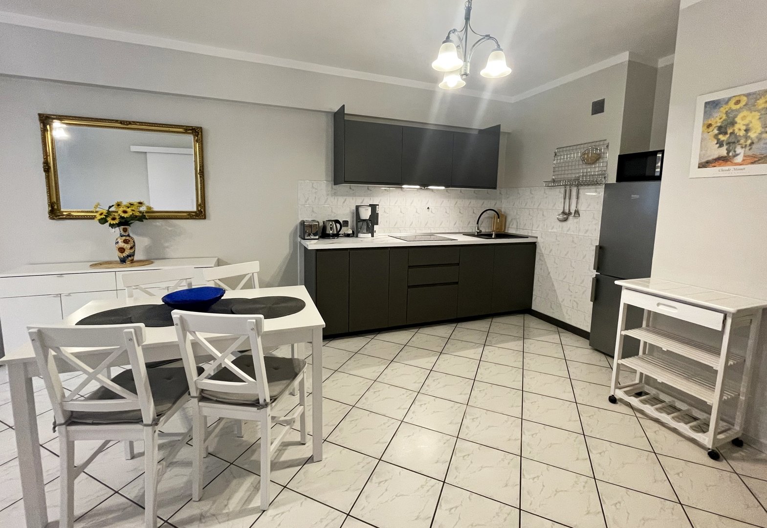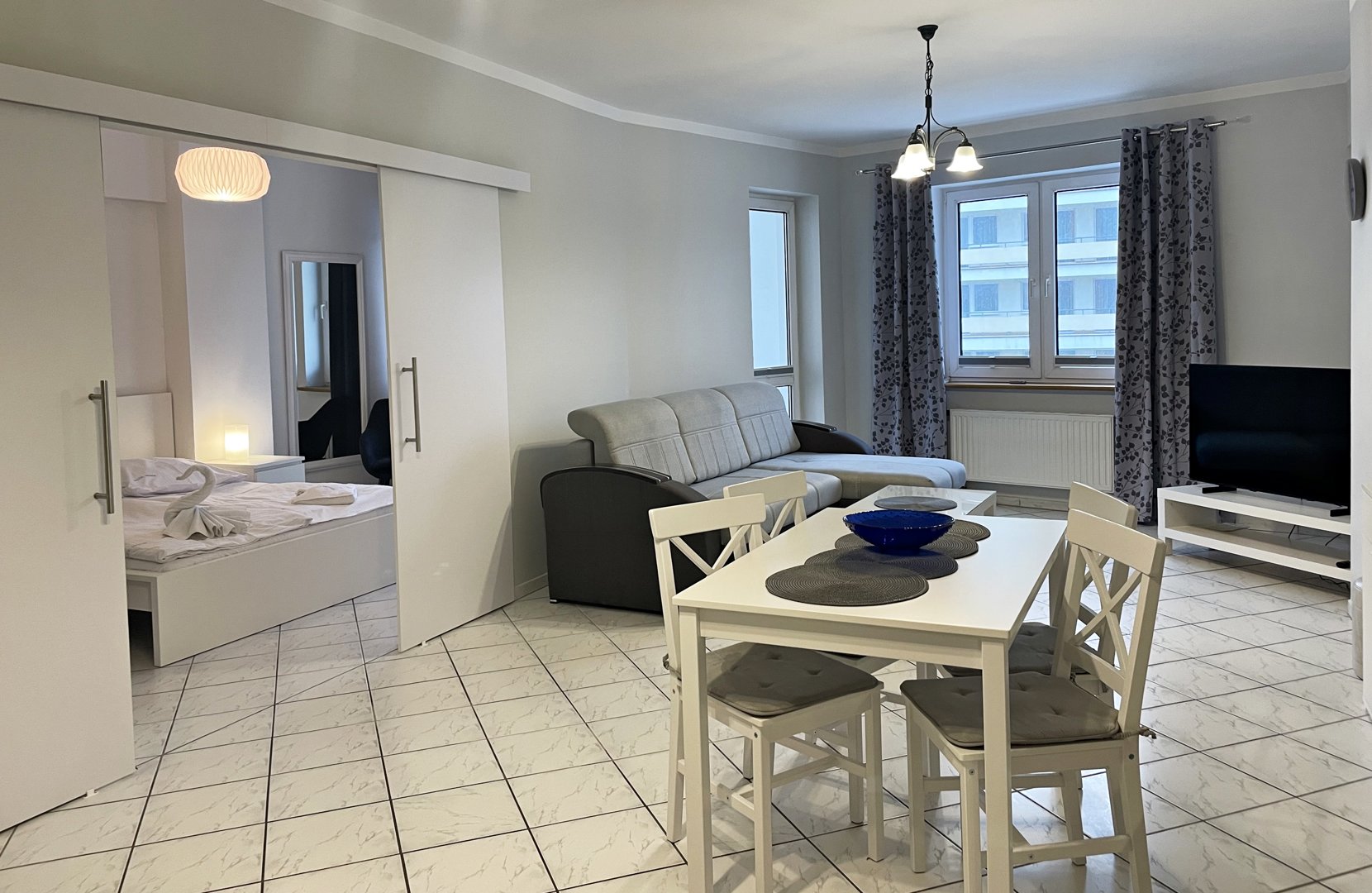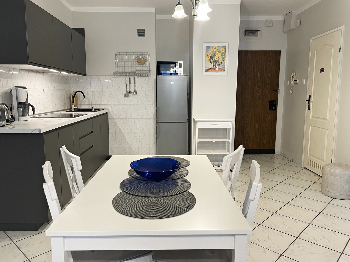 Zapraszamy do komforotowego Apartamentu, gdzie do dyspozycji gości jest przestronny salon połączony z aneksem kuchennym z dużym stołem jadalnianym. W lokalu znajduje się przytulna sypialnia z pojemną szafą na ubrania. Apartament posiada bardzo ładny balkon z częściowym widokiem na morze. Dodatkowym atutem tego mieszkania jest łazienka z wygodną wanną. Zapraszamy!