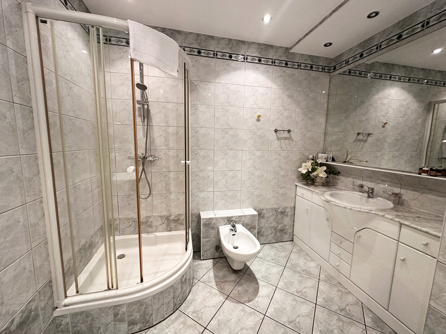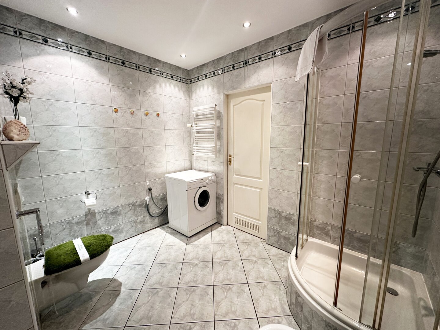 * łazienki z kabiną prysznicową oraz pralką