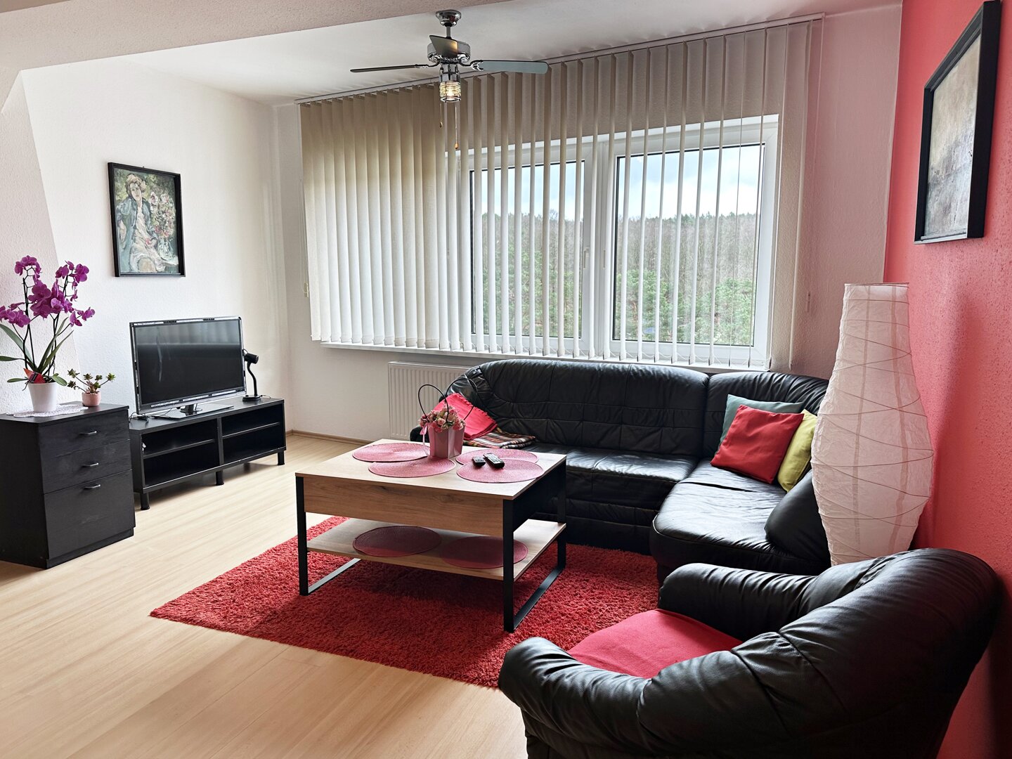 * salonu wyposażonego w dwuosobową, rozkładaną kanapę pełniącą funkcje spania jak i wypoczynku z TV