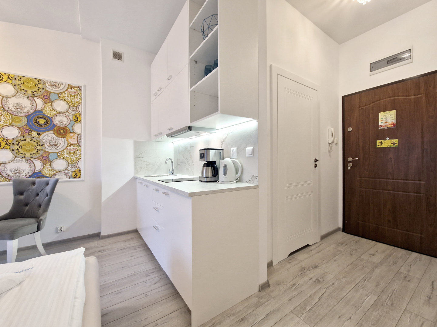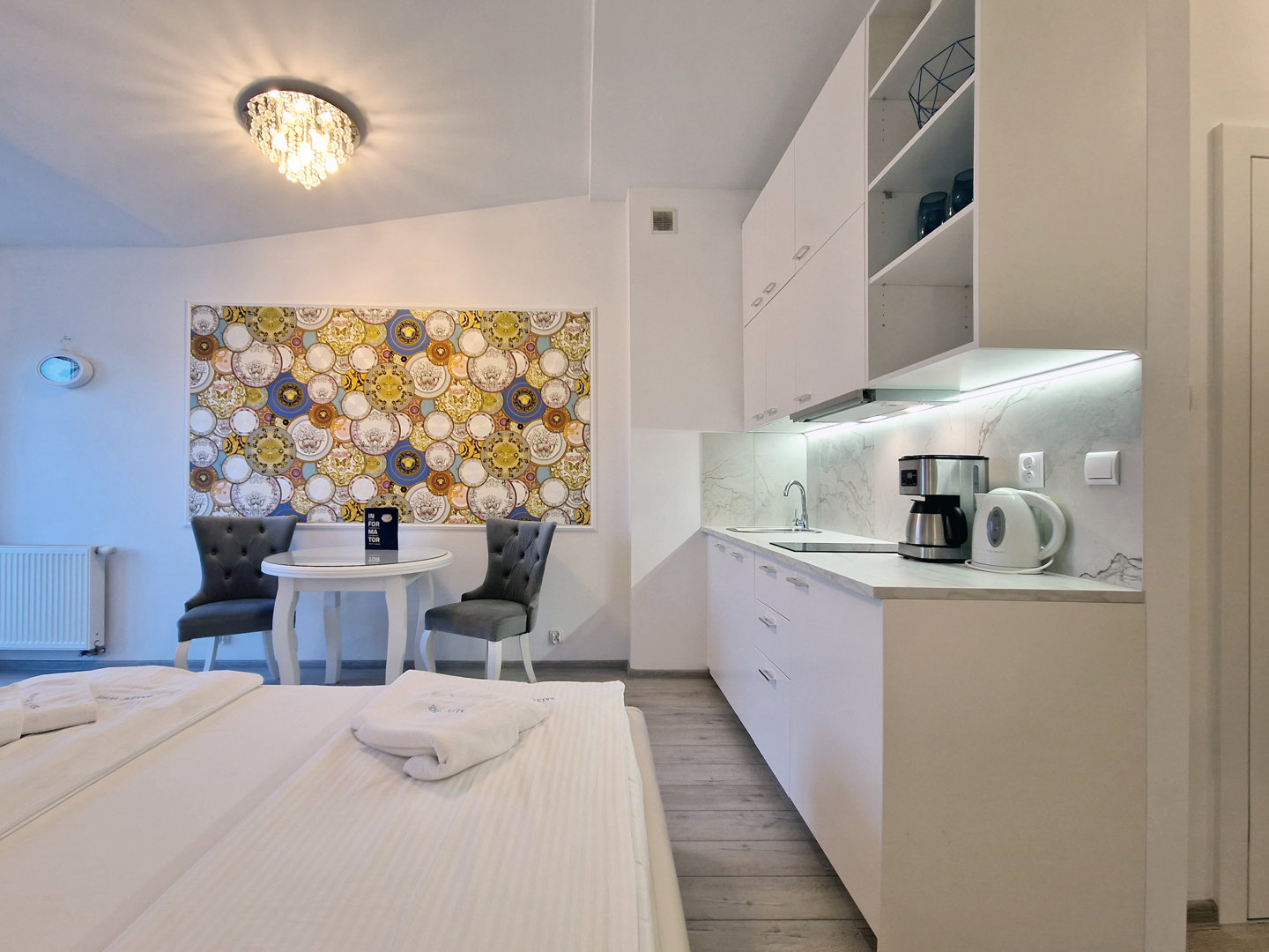 Apartament na ostatnim, 4. piętrze, z wschodnią ekspozycją, idealny dla pary. Wnętrze charakteryzuje się jasnym, nowoczesnym wystrojem i dużym łóżkiem, co zapewnia komfortowy wypoczynek. Zlokalizowany blisko plaży, stanowi doskonałą bazę na relaksujący pobyt. Odpowiedni wybór dla osób szukających spokojnej atmosfery i bliskości morza.