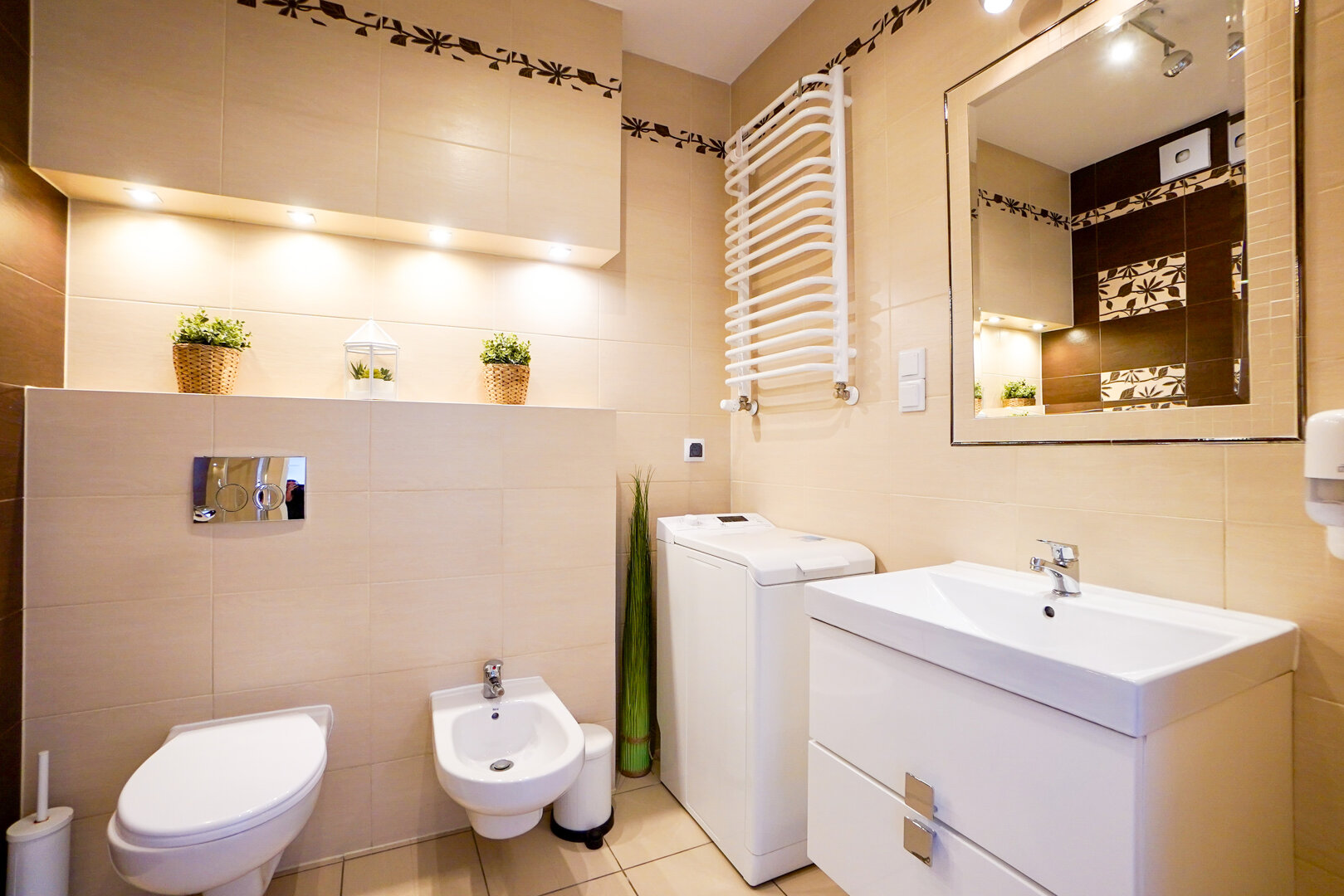 Łazienka jest funkcjonalnie zaprojektowana i wyposażona z myślą o komforcie codziennego użytkowania, łącząc nowoczesne rozwiązania z wygodą.Pralka ładowana od góry, idealnie wpasowana w przestrzeń łazienki, to praktyczne rozwiązanie, szczególnie przy dłuższych pobytach.Dodatkowo łazienka jest wyposażona w bidet, to praktyczny i elegancki dodatek, który podnosi komfort użytkowania tej przestrzeni.