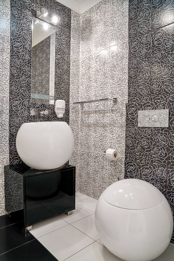 Wnętrze salonu zostało zaprojektowane w eleganckim stylu z nutą luksusu. Dominują tu jasne barwy, głównie biel i odcienie beżu, które optycznie powiększają przestrzeń i nadają jej lekkości.