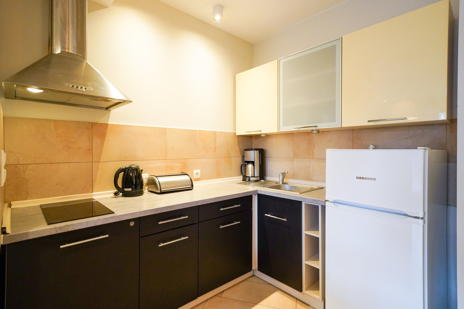 * w pełni wyposażonego w podstawowe akcesoria i sprzęt kuchenny aneksu