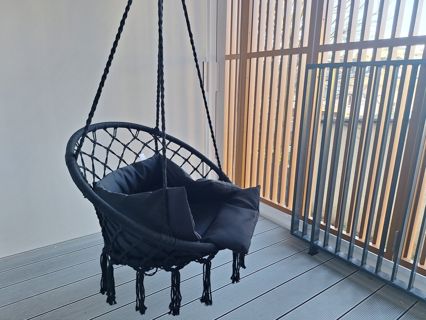 Balkon wprowadza do pomieszczenia dużo naturalnego światła, a dzięki LED-owym podświetleniom wejście nabiera estetycznego, stylowego wyglądu.Wyposażony w meble tarasowe dzięki czemu apartament jest idealnym miejscem na wypoczynek zarówno dla rodzin, jak i par.