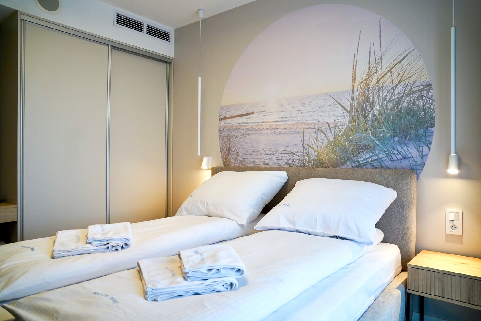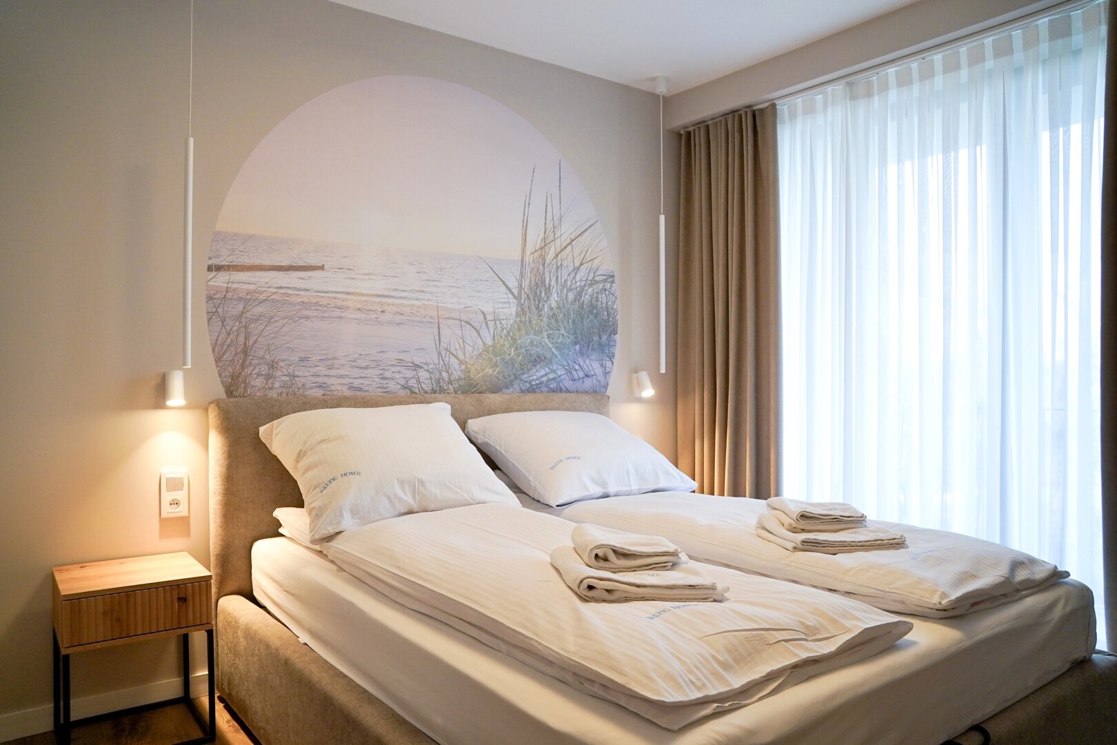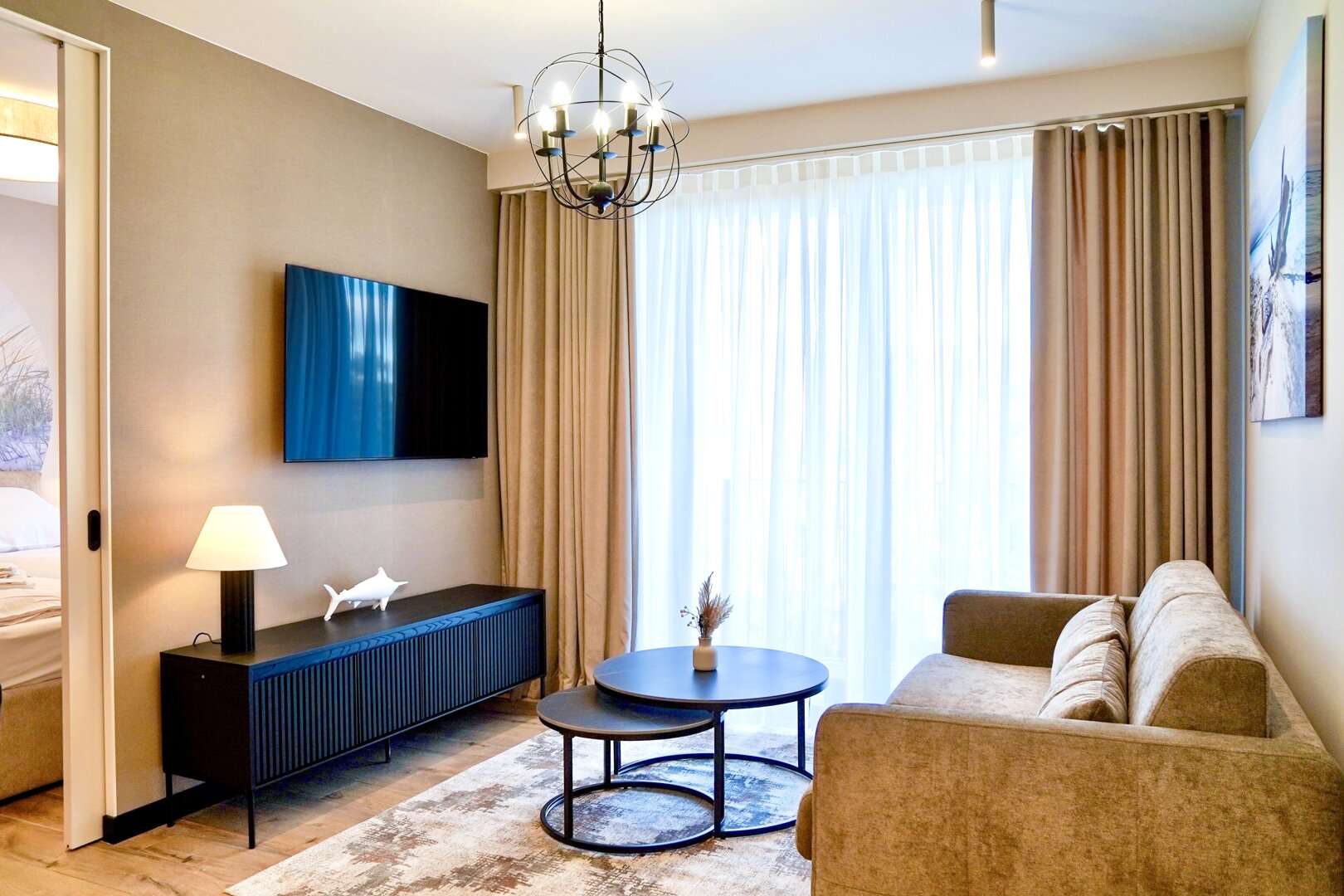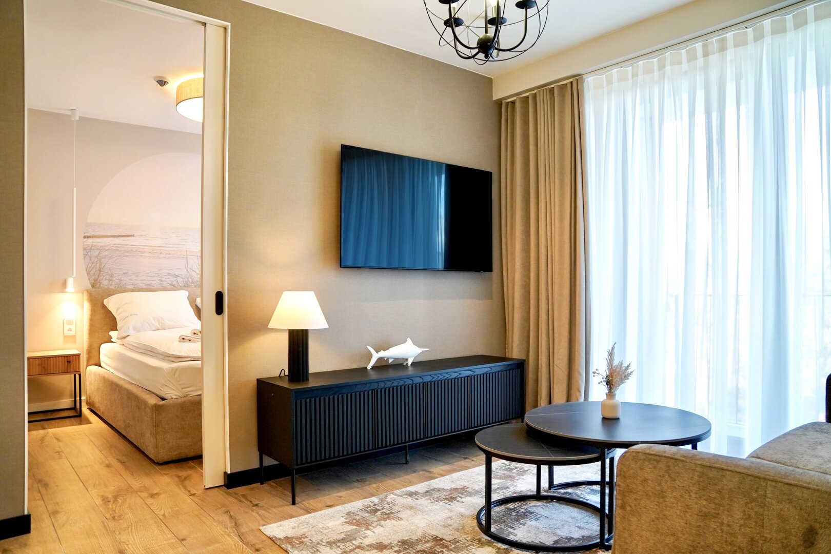 Apartament H308 to doskonałe miejsce dla par, rodzin i grupy znajomych. Znajdujący się na drugim piętrze, oferuje przytulną sypialnię, łazienkę i aneks kuchenny. Z przestronnego balkonu od strony wschodniej można się zrelaksować, podziwiając otoczenie. Wysoka jakość wykończeń oraz lokalizacja blisko plaży sprawiają, że jest to idealny wybór na urlop. W obiekcie dostępne są również miejsca postojowe, w tym w garażu podziemnym (konieczna rezerwacja).
